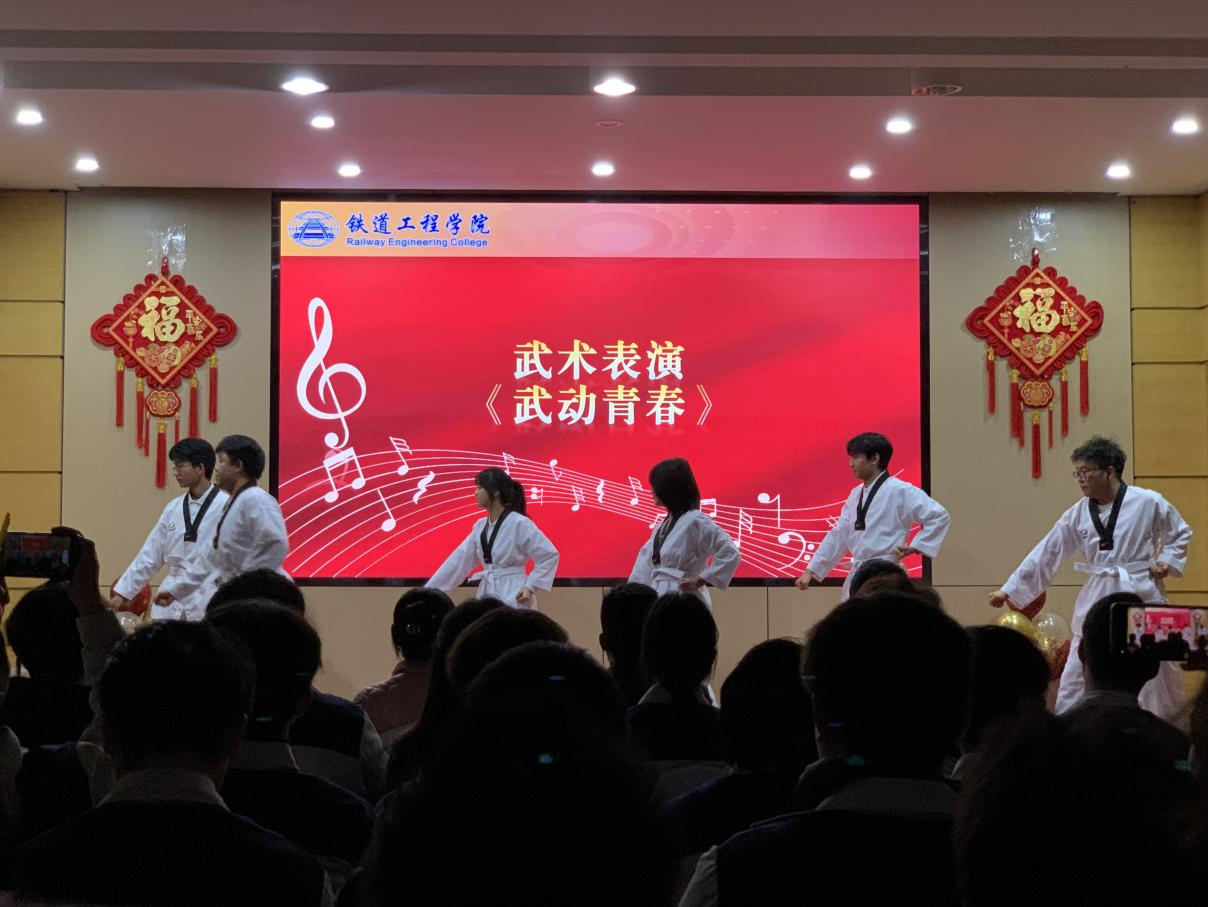 王清平代表公司致辞,向全体新生提出“开放思维,拥抱未来”、“筑梦青春、勇于创新”和“开路先锋,成就非凡”三点期望,希望新同学们争做铁道先锋学子,在新征程上不负韶华、百炼成钢。文艺汇演在充满韵律的音乐中拉开序幕,本次晚会由武术表演《武动青春》、歌曲《舍得》、诗朗诵《青春中国》等节目组成,节目形式丰富多样,展现出同学们的青春活力,传递着温暖与力量,展现出当代老员工的独特风采。抽奖环节更是扣人心弦,将现场气氛推向高潮。